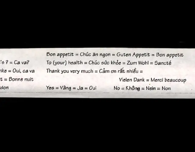 The project involved designing chopstick bags featuring a map of Vietnam with demographic excerpts from a popular travel guide on one side, and a multilingual phrase guide in Vietnamese, English, French, and German on the other. Each bag contained a pair of bamboo chopsticks and was distributed in tourist cafés in Hanoi, later featured in my Laundry Days installation, and offered at Vietnamese restaurants in Berlin, subtly critiquing the oversimplification of cross-cultural engagement and communication while transforming an everyday object into a symbol of longing for connection with “the other.”